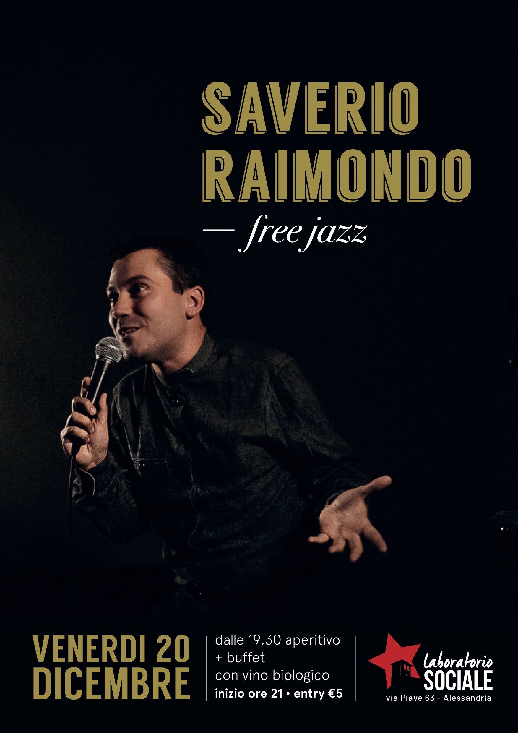 Venerdì 20 dicembre torna sul palco della saletta Saverio Raimondo con lo show – di cui è autore ed interprete – “Free jazz”.