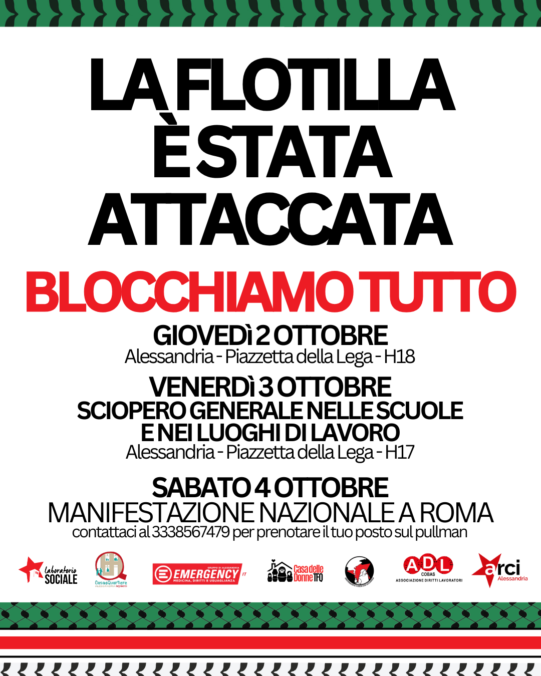 Oggi Alessandria ha visto la manifestazione più partecipata della sua storia: in 10mila abbiamo attraversato la città, cambiato il percorso del corteo e preso il cavalcavia, bloccando il traffico contro il genocidio in Palestina. Lo diciamo chiaramente: di fronte al massacro del popolo palestinese, di fronte ai crimini di guerra, al blocco della missione umanitaria della Global Sumud Flotilla la risposta non può che essere il caos. Una risposta piena di dignità e rabbia contro chi in queste ore ha cercato di screditare le manifestazioni di questa settimana.